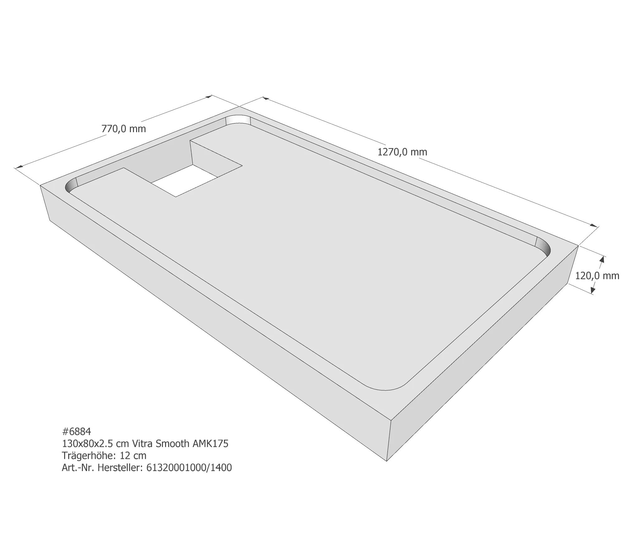 Duschwannenträger passend für VitrA Smooth 130 × 80 × 2,5 cm