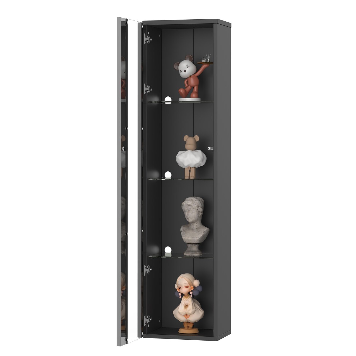 OKWISH Vitrine 40x29x170 cm Schwarz mit Glastrennwand 4 Ebenen und LED-Beleuchtung App und Fernbedienung Acryl Spanplatte modern