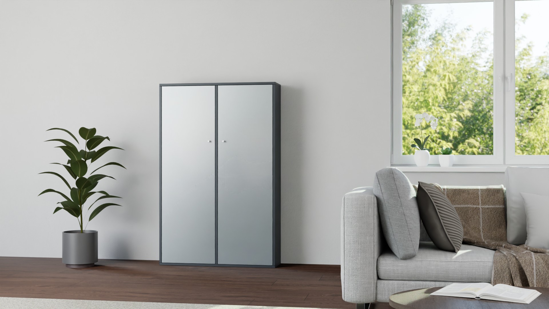 Wohnzimmer Einrichtung Grau Wandschrank Hänge Vitrine Luxus Einrichtung Modern