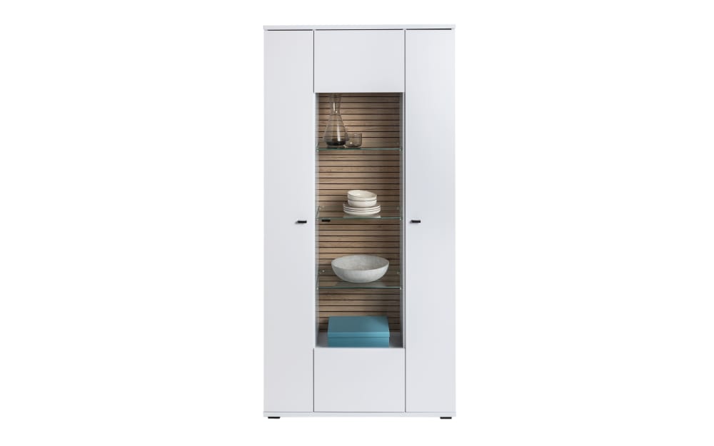 Livin Vitrine III Rovigo, weiß Holzdekor, Kunststoff, Glas