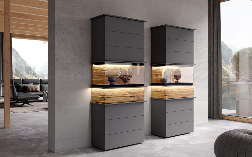 Set One Vitrine QUINCY, anthrazit/Eiche-Nachbildung, inkl. LED-Beleuchtung Glas, Holzdekor