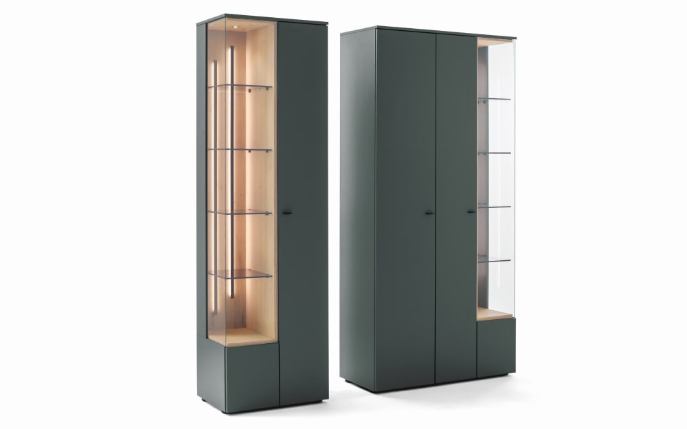 VENJAKOB Vitrinen Kombi Vanya, Wildeiche hell/smaragdgrün dunkelgrün Holz, Glas, Lack, Holzfurnier