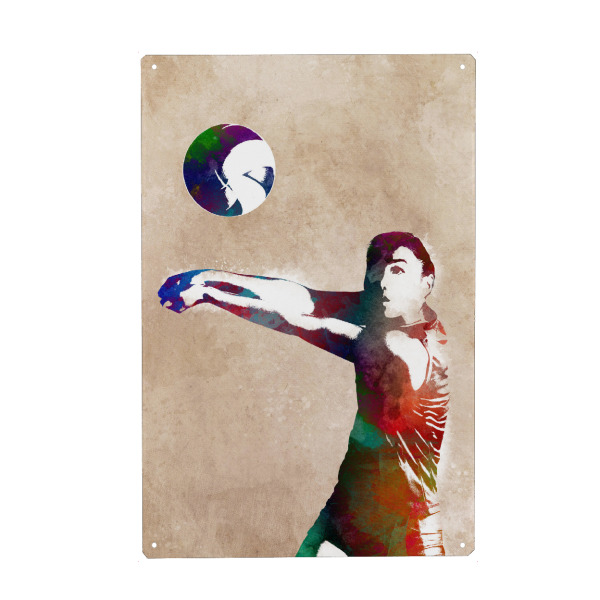 Metall Poster "Volleyball Watercolor (matart)" artboxONE - Sport - Volleyball,Ball,Volleyballspieler,Spieler,Mannschaft,Sport,Volleyball,Bunt,Aquarell