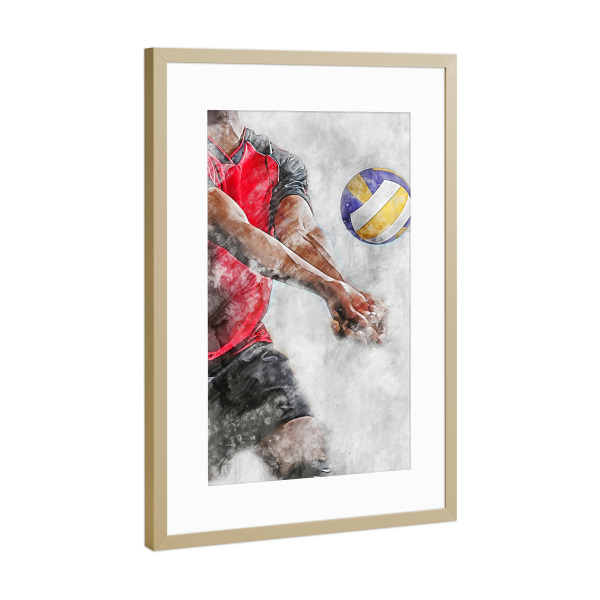 Poster mit Rahmen Gold "Volleyball 1 (matart)" artboxONE - Sport - Volleyball,Ball,Volleyballspieler,Spieler,Team,Sport,Volleyball