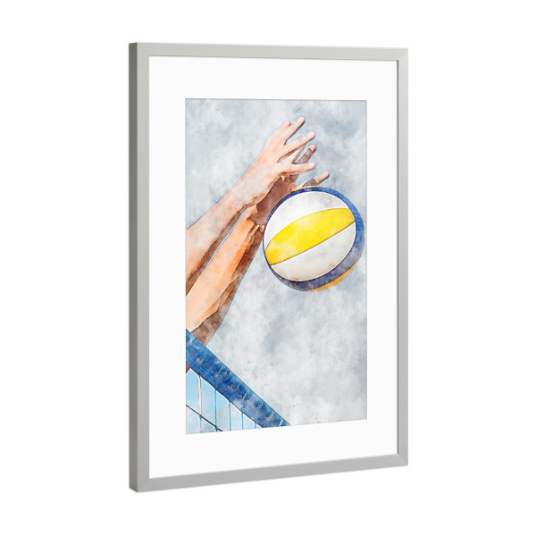Poster mit Rahmen Silber "Volleyball 2 (matart)" artboxONE - Sport - Volleyball,Ball,Volleyballspieler,Spieler,Team,Sport,Volleyball