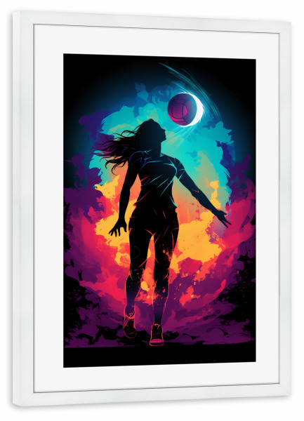 Poster mit Rahmen weiß "Volleyball Colorful 4 (matart)" artboxONE - Sport - Volleyball,Ball,Volleyballspieler,Spieler,Team,Sport,Volleyball