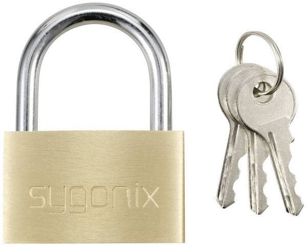 Sygonix SY-5045282 Vorhängeschloss 24.7 mm teilweise gleichschließend Goldgelb Schlüsselschloss