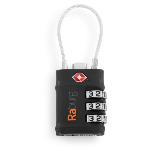 Raburg TSA-Zahlenschloss mit 3-stelliger Kombination & flexiblem Drahtbügel, Vorhängeschloss aus Zinklegierung & Stahl, Schwarz