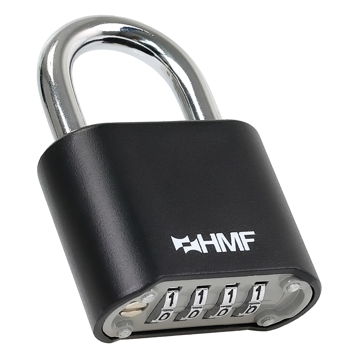 HMF Zahlenschloss Vorhängeschloss 3507-02, robustes Schloss mit 4-stelligem Zahlencode aus Zinklegierung | 5,3 x 2,4 x 7,8 cm | Schwarz