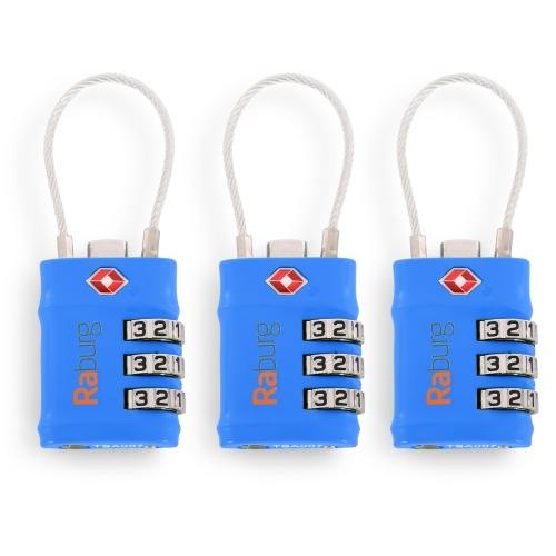 Raburg TSA-Zahlenschloss 3er-Set mit 3-stelliger Kombination & flexiblem Drahtbügel, Vorhängeschloss aus Zinklegierung & Stahl, Blau