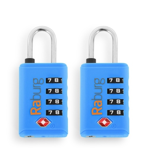 Raburg TSA-Zahlenschloss 2er-Set mit 4-stelliger Kombination, kompaktes Vorhängeschloss mit Bügel aus Stahl, Blau