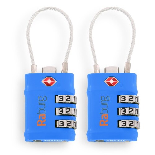 Raburg TSA-Zahlenschloss 2er-Set mit 3-stelliger Kombination & flexiblem Drahtbügel, Vorhängeschloss aus Zinklegierung & Stahl, Blau