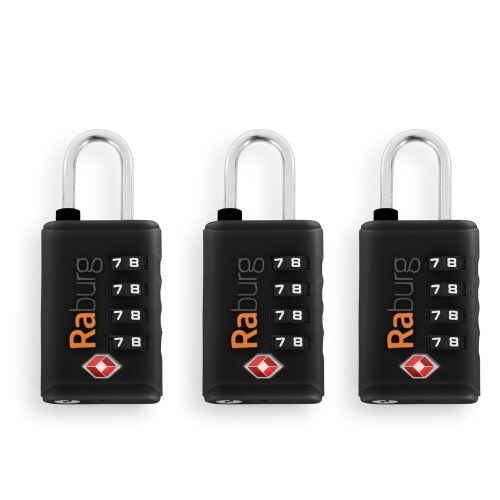 Raburg TSA-Zahlenschloss 3er-Set mit 4-stelliger Kombination, kompaktes Vorhängeschloss mit Bügel aus Stahl, Schwarz