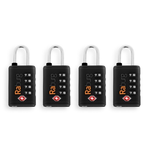 Raburg TSA-Zahlenschloss 4er-Set mit 4-stelliger Kombination, kompaktes Vorhängeschloss mit Bügel aus Stahl, Schwarz