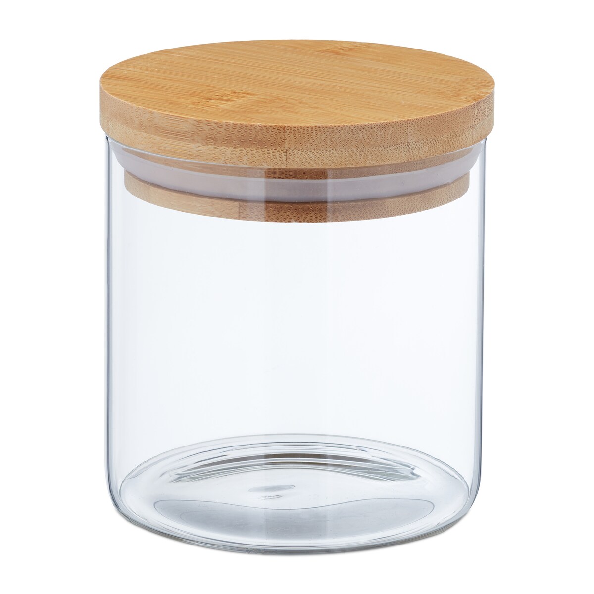 Relaxdays Vorratsgläser mit Bambusdeckel, 4er Set, kleine Vorratsdosen aus Glas, 750 ml, luftdicht, transparent/natur