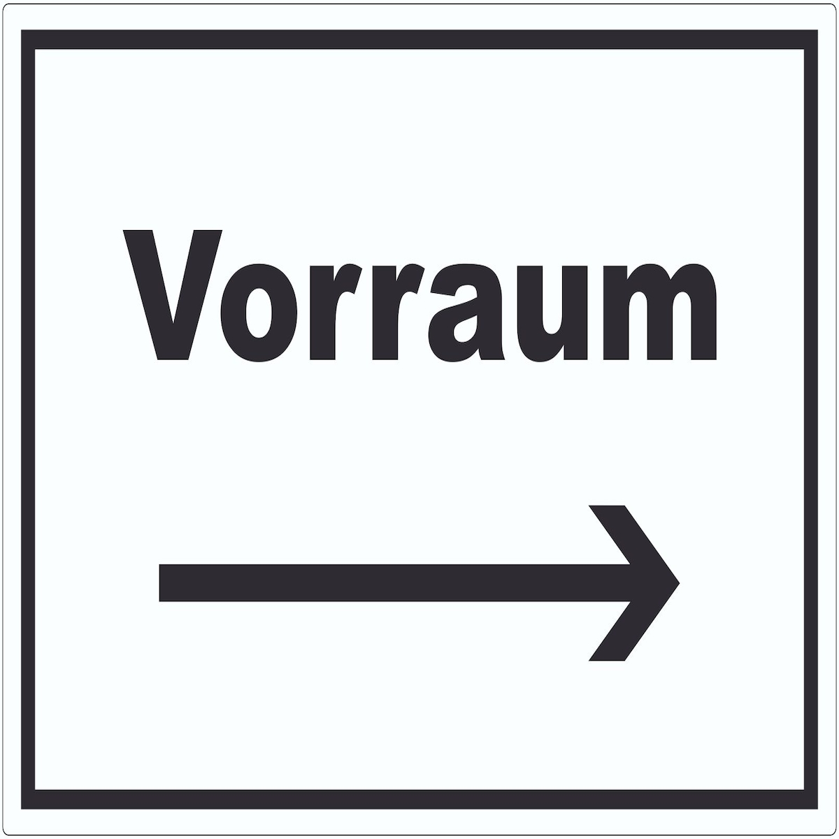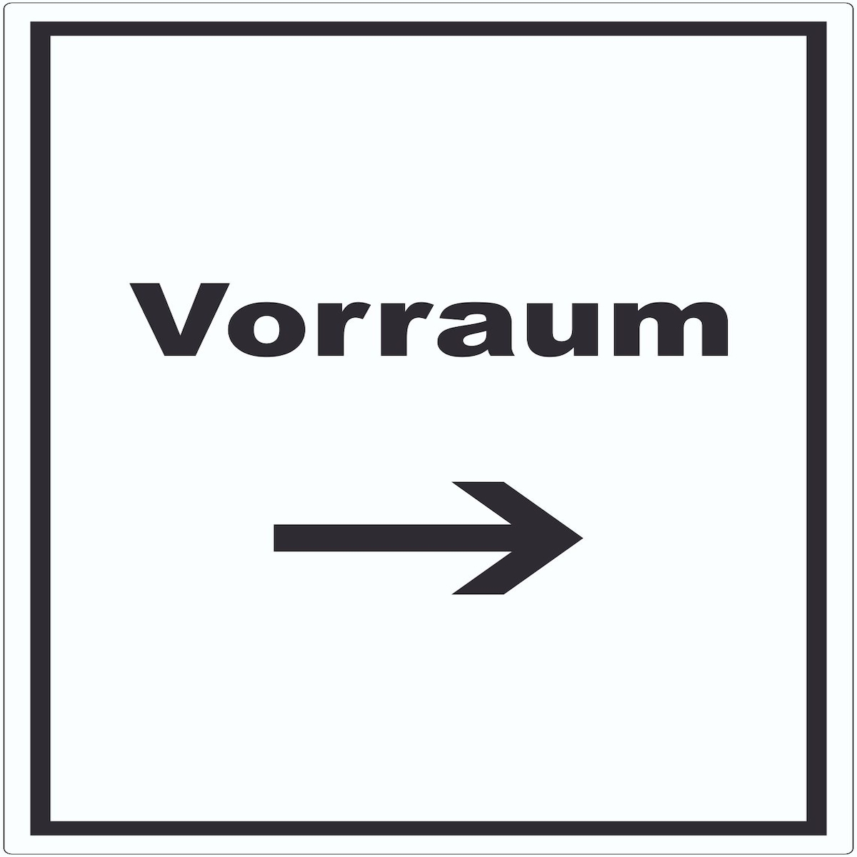 Vorraum Schild mit Text und Richtungspfeil rechts Diele Vorzimmer waagerecht A6 Rückseite selbstklebend