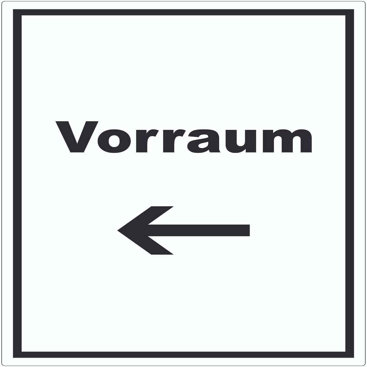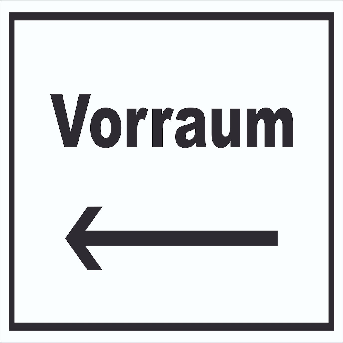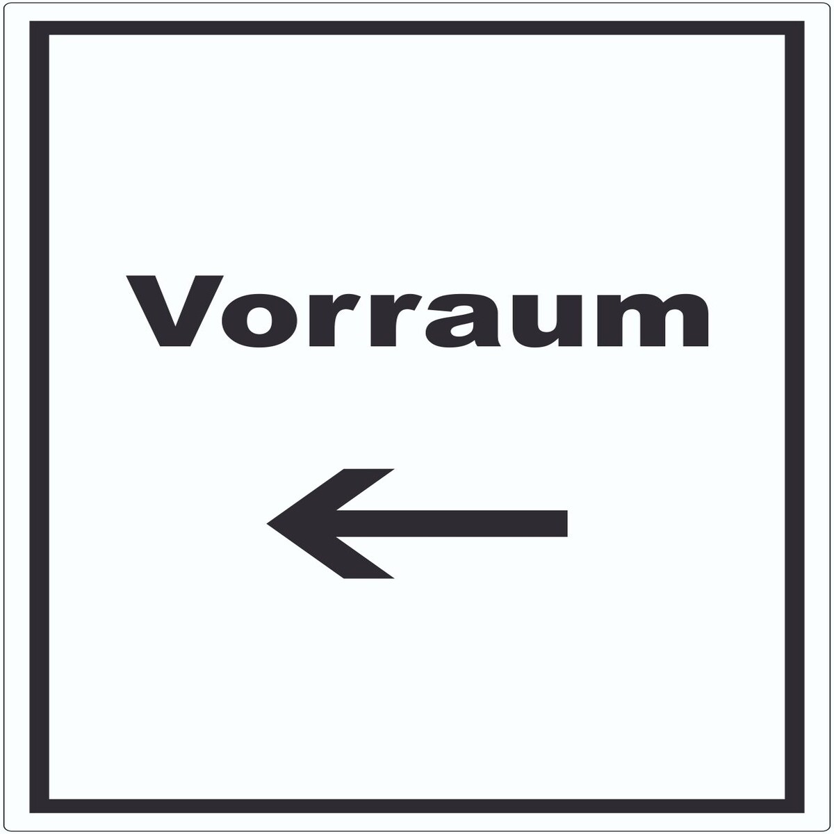 Vorraum Schild mit Text und Richtungspfeil links Diele Vorzimmer hochkant A4 Rückseite selbstklebend