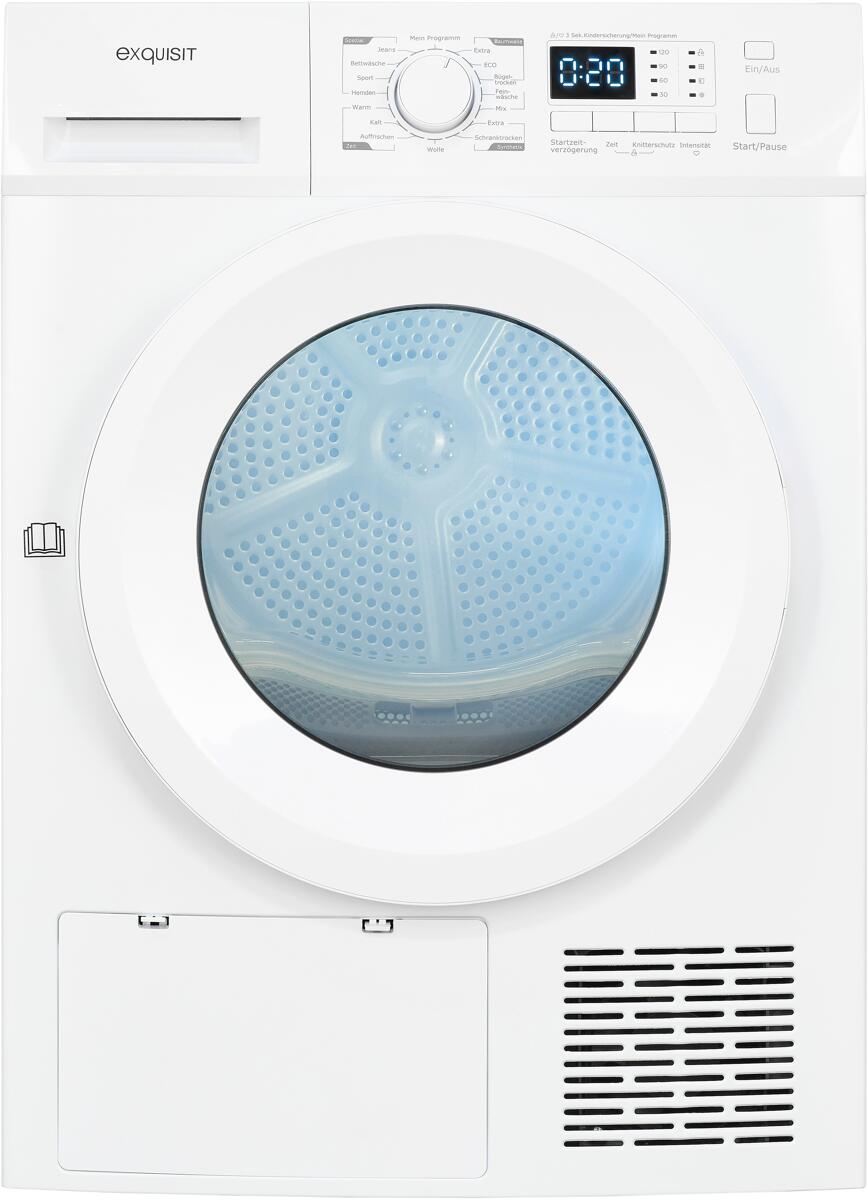 Exquisit Wärmepumpentrockner TWP5803-030 weiss | 8 kg Fassungsvermögen | Energieeffizienzklasse E | Kindersicherung | Auto Abschaltung