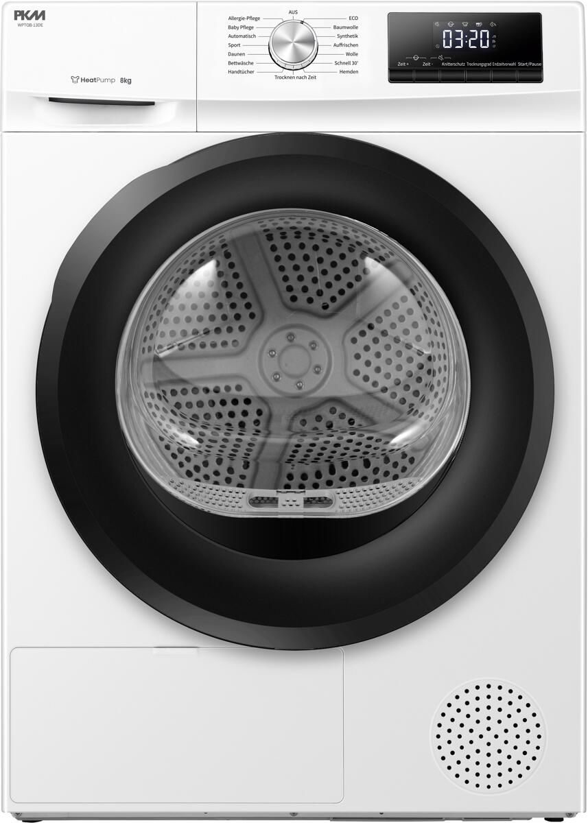PKM Wärmepumpentrockner WPTO8-13DE 8 KG 13 Programme Eco Programm Endzeitvorwahl Knitterschutz