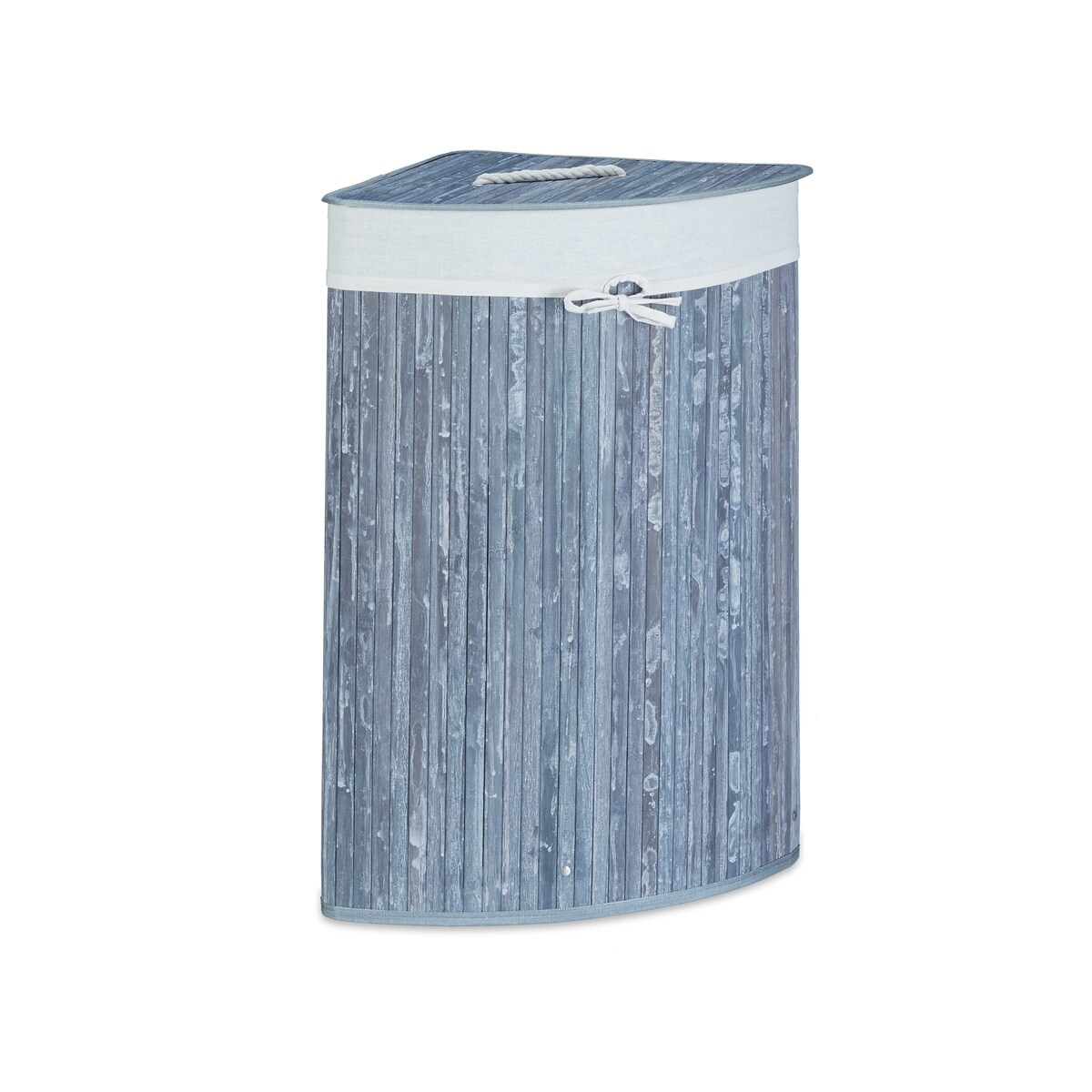 Relaxdays Eckwäschekorb Bambus, faltbare Wäschebox 60 l, platzsparend, Wäschesack Baumwolle, 65 x 49,5 x 37 cm, grau