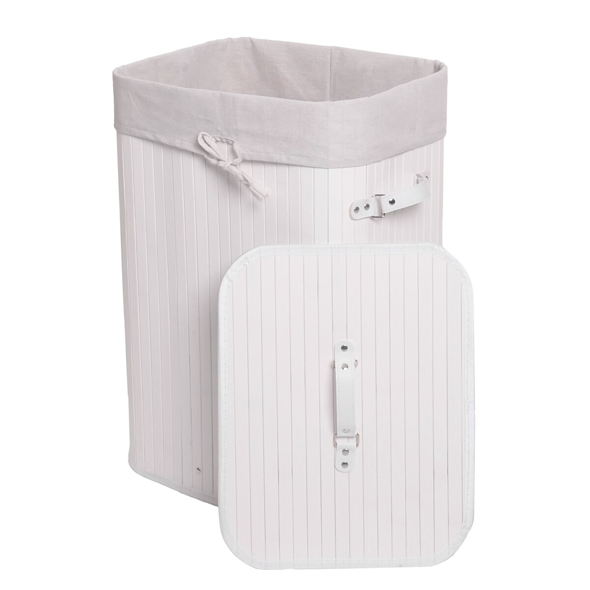 Wäschekorb aus Bambus - Wäschesammler - 72 L Volumen - Mit Deckel - Zur Montage - Weiß