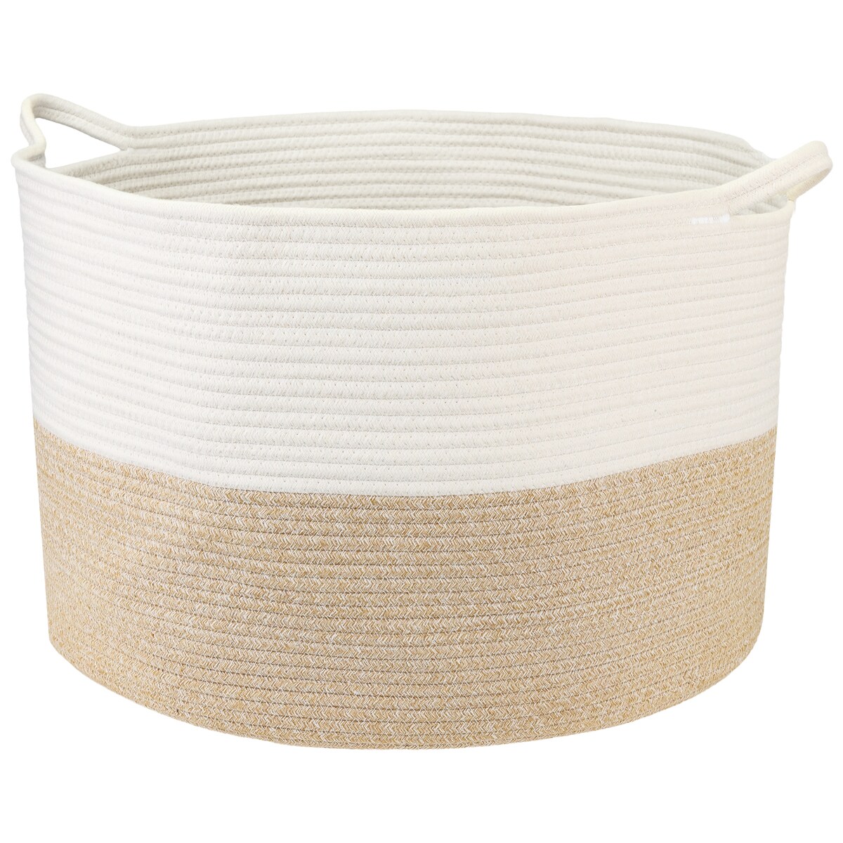 Großer Wäschekorb aus gewebtem Seil, 58 l, weiß und braun, für Decken und Spielzeug