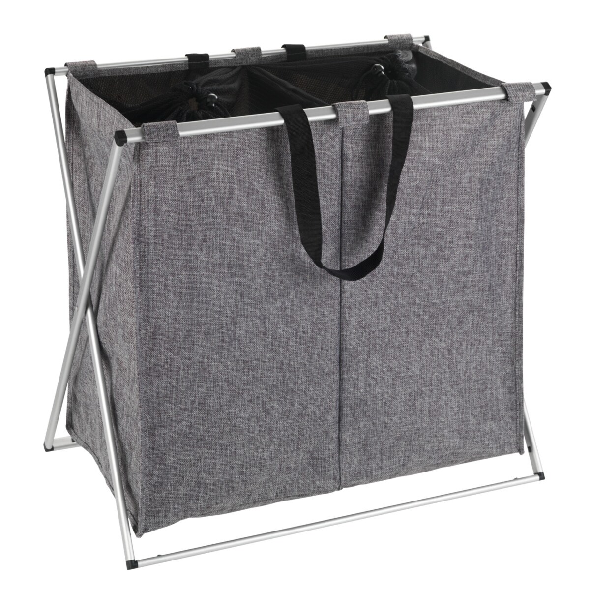 WENKO Wäschesammler Duo, Wäschekorb 120 Liter in Grau meliert, 2 x 60 L Sortierfächer, Trageriemen