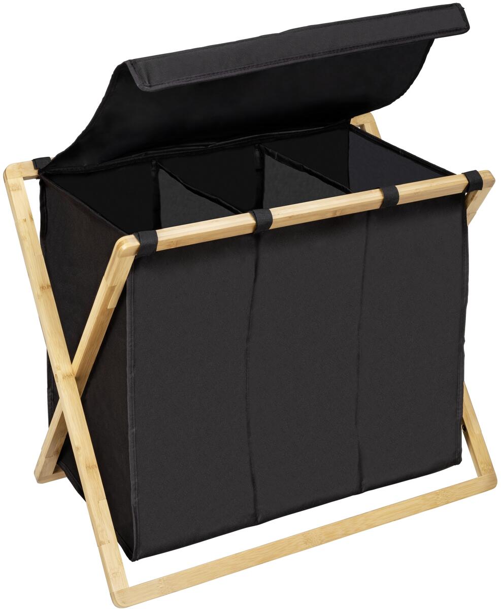 Wenko Trio Ecori Wäschesammler, bambus, 3 fächer, schwarz