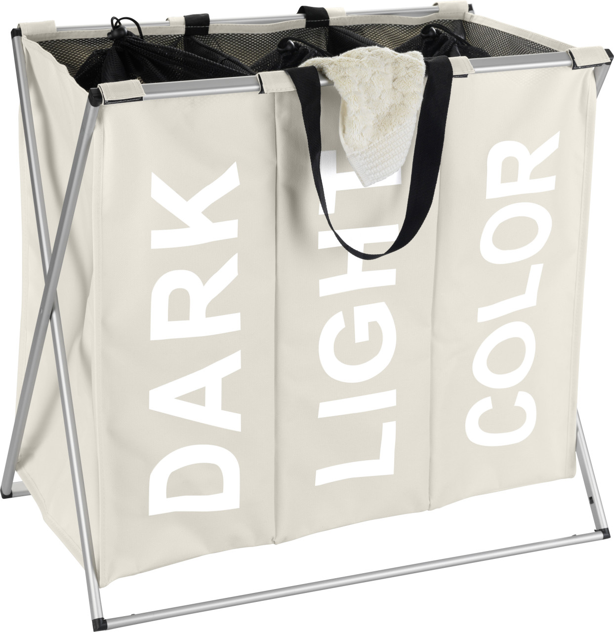 WENKO Wäschesammler Mod. Trio XL Beige, mit drei Fächern