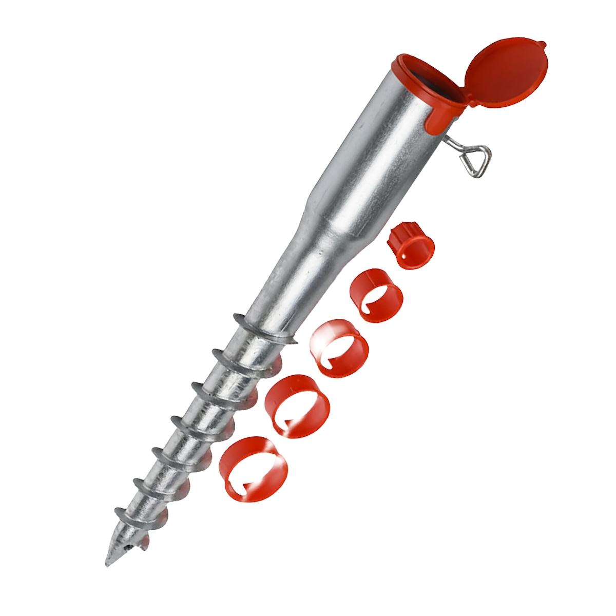 Relaxdays Bodenhülse, für Sonnenschirm & Wäschespinne, zum Eindrehen, 26-65 mm Stangendicke, Bodendübel, silber/rot