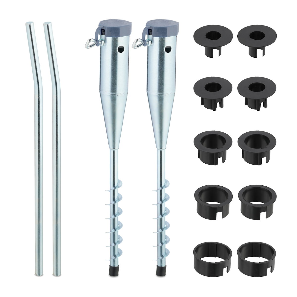 Relaxdays Bodenhülse, 2er Set, Sonnenschirm & Wäschespinne, zum Eindrehen, 25-55 mm Stangendicke, Bodendorn, silber/grau