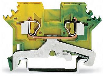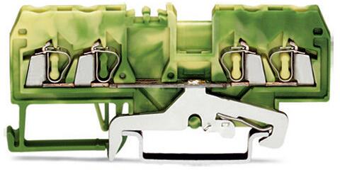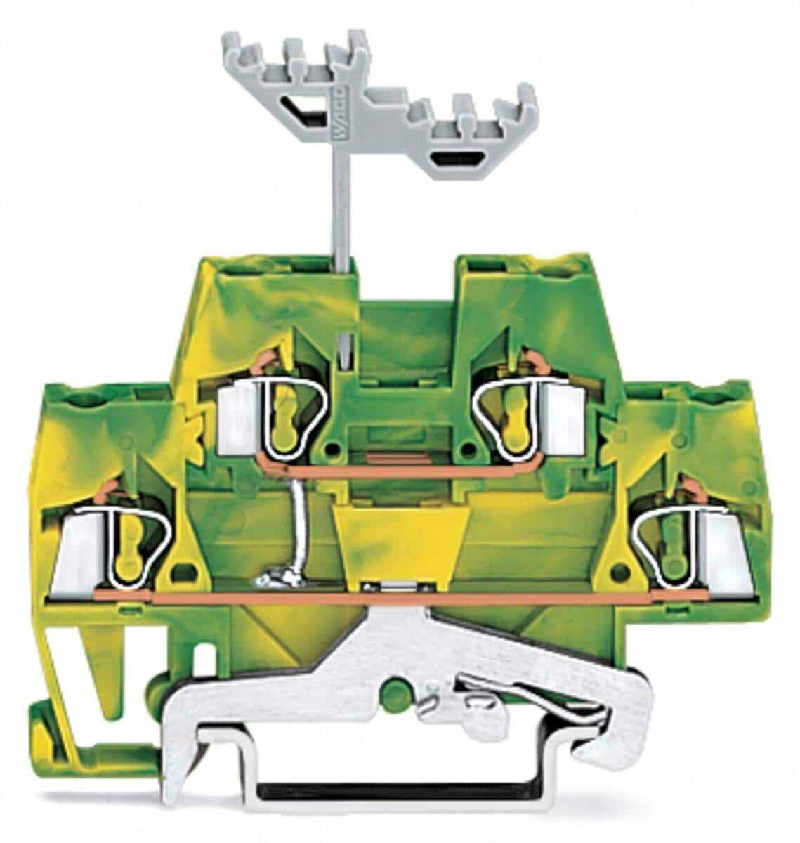 Wago 280-517 Doppelstockklemme, 4-Leiter-Schutzleiterklemme, 2,5 mm², intern gebrückt, für Tragschiene 35 x 15 und 35 x 7,5, CAGE CLAMP , grün-gelb