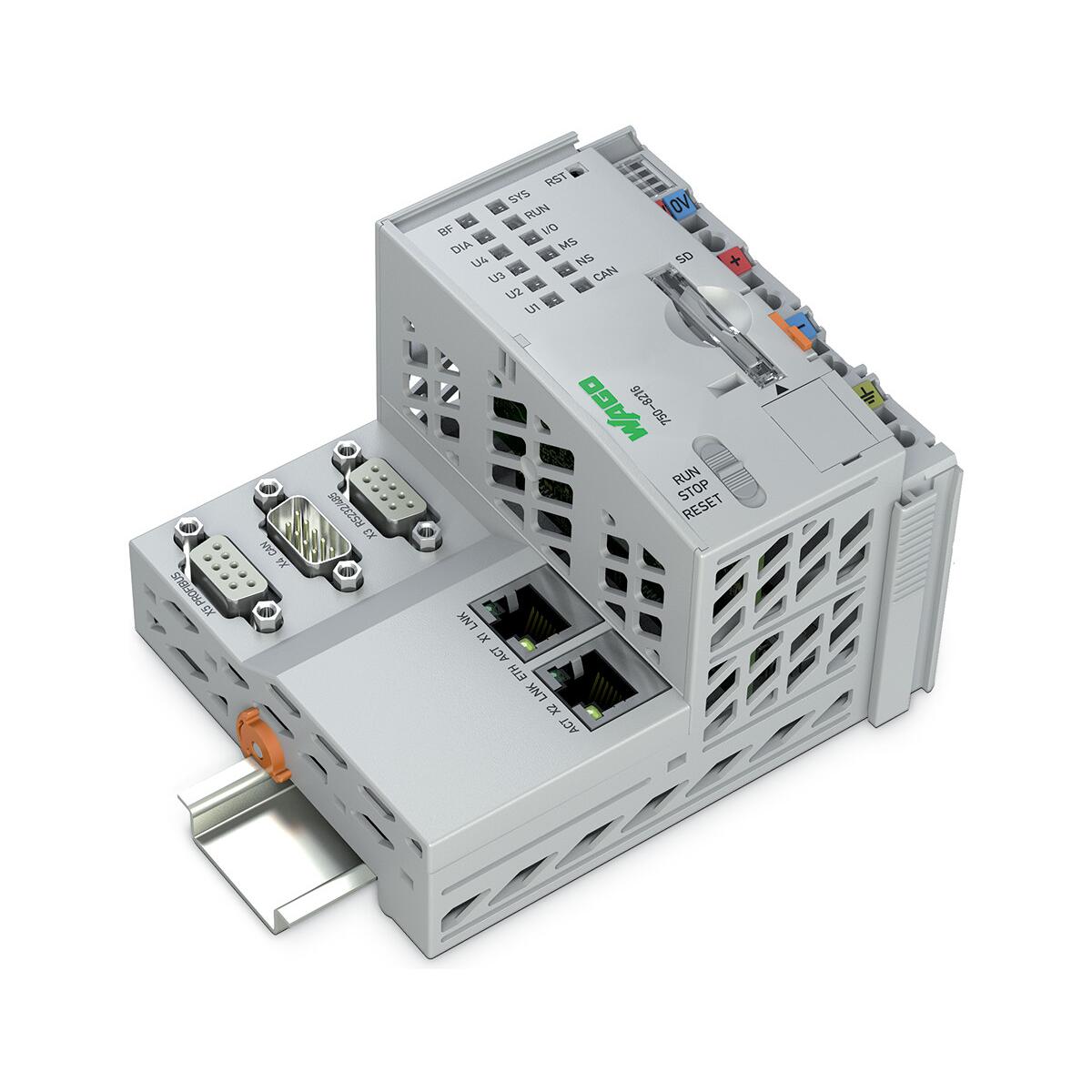 Wago 750-8216 Controller PFC200, 2. generation, 2 x Ethernet, RS-232/485, CAN, CANopen, Profibus-Slave, lichtgrau