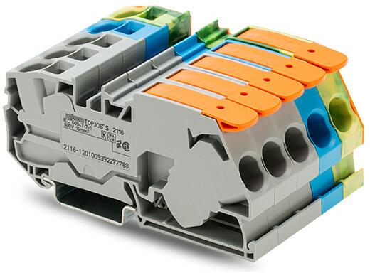 Wago 2116-1201/605-038 Drehstromset mit orangefarbener Abschlussplatte, 2-Leiter-Reihenklemmen, 16mm², 800V, grau/blau/grün-gelb