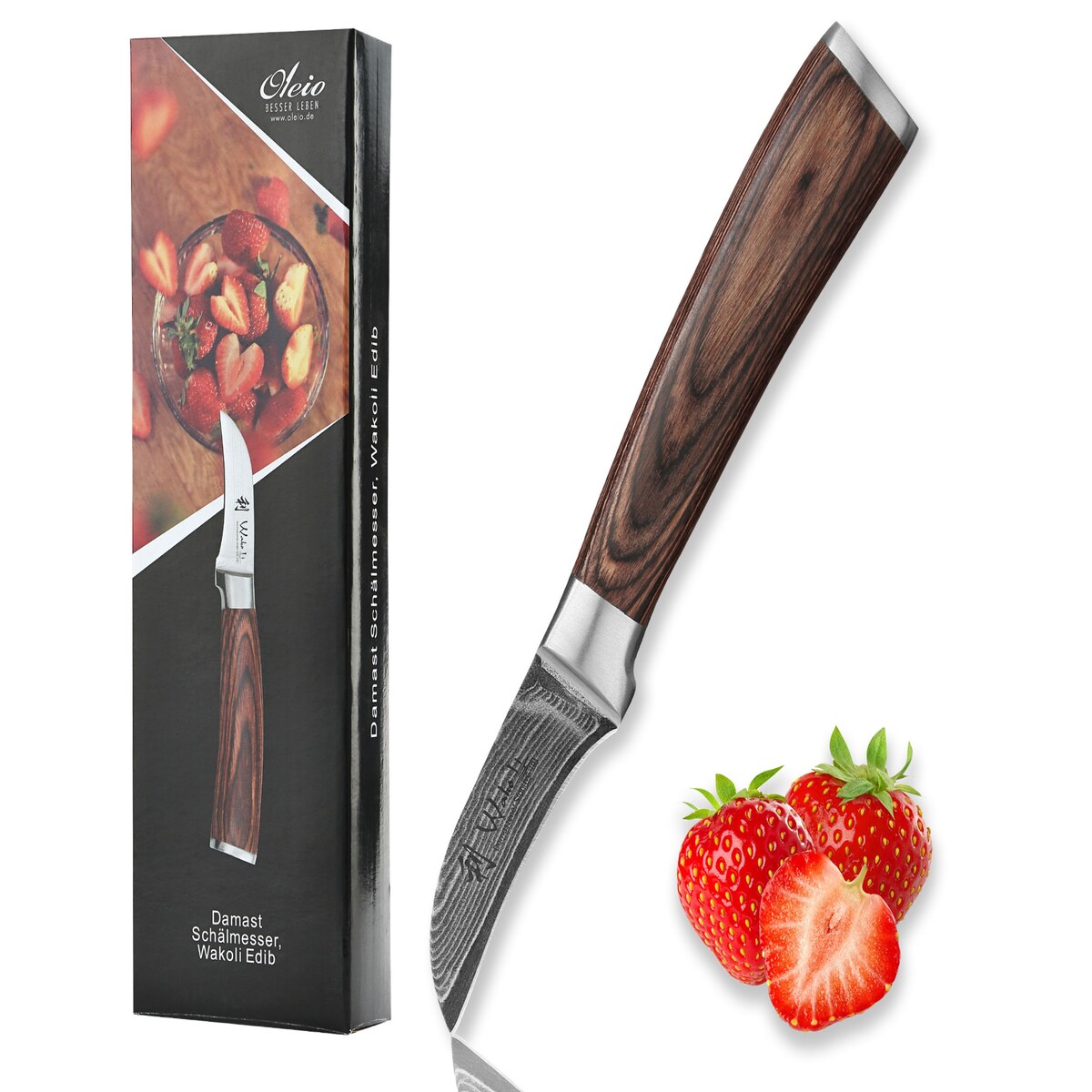 Wakoli EDIB Pro Damast Schälmesser & Tourniermesser I 6cm Klinge I Pakkaholzgriff