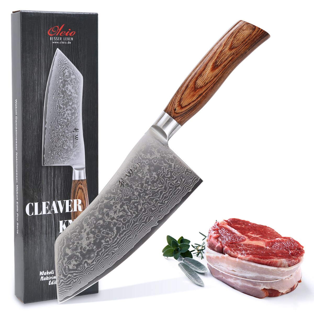 Wakoli EBO Damast Kochmesser Chai Dao I 17,5 cm Klinge I schwarzer Eichenholzgriff