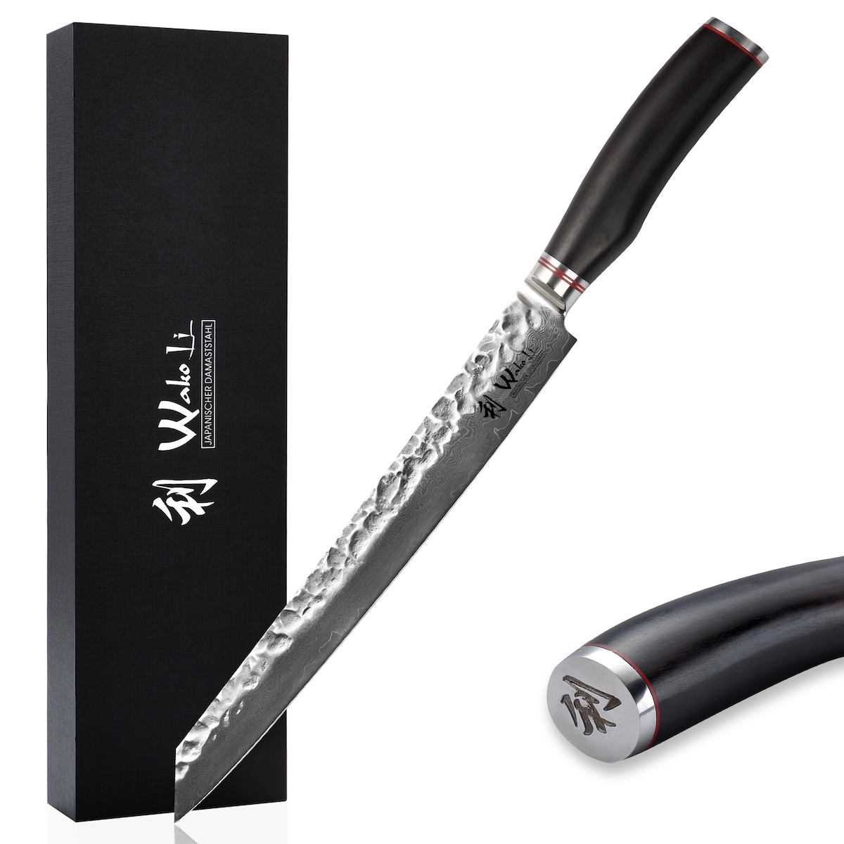 Wakoli EBO Damast Tranchiermesser I 16 cm Klinge I schwarzer Eichenholzgriff