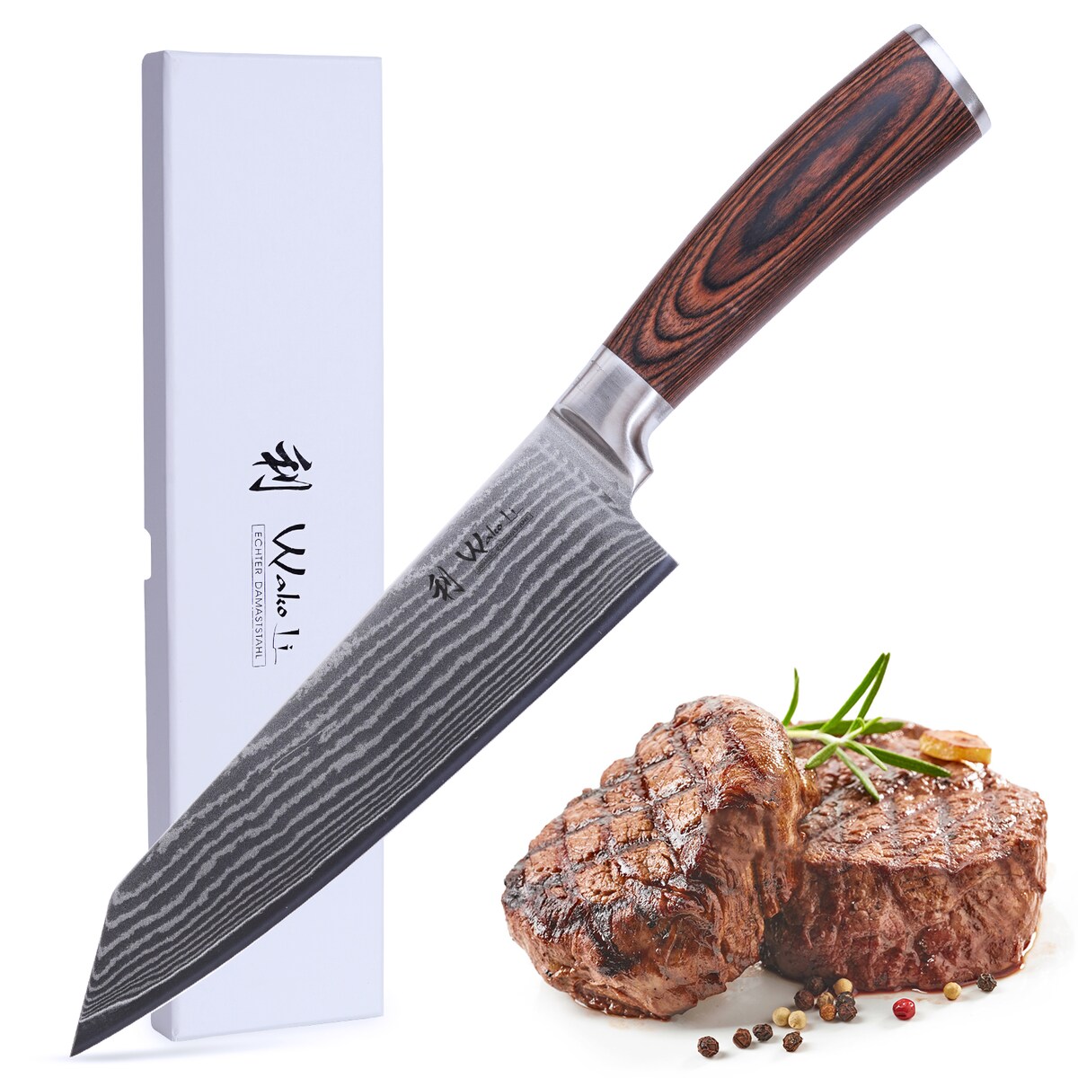 Wakoli EDIB Pro Damast Chefmesser I 20cm Klinge I Pakkaholzgriff