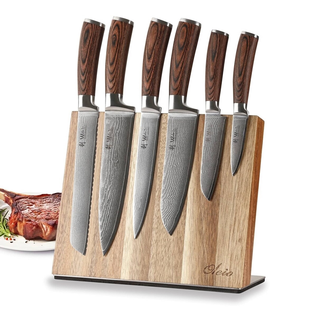 Wakoli Edib 6er Damastmesserset I 8 - 20 cm Klinge I mit Messerblock