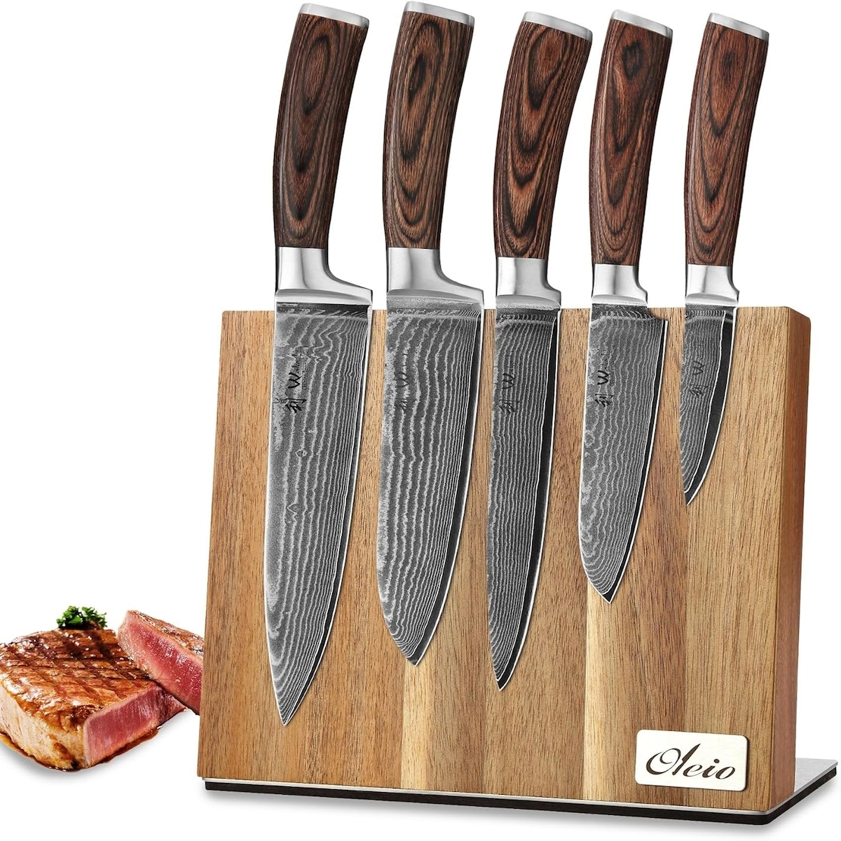 Wakoli Edib Pro 5er Damastmesser-Set I Holzbox I 8-20cm Klinge I Pakkaholzgriffe #1
