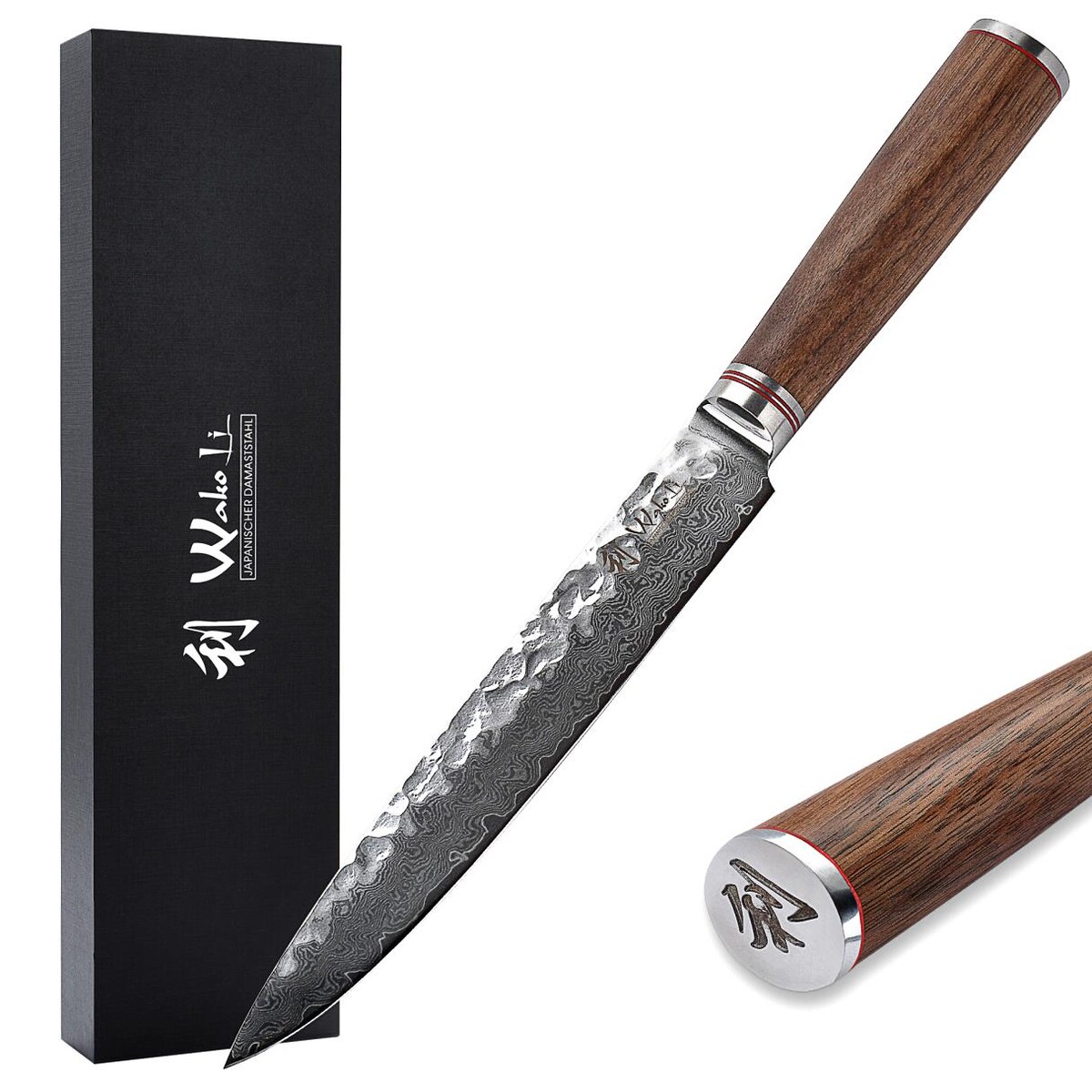 Wakoli Nussbaum Damast Fleischmesser I 20 cm Klinge I Nussbaumholzgriff
