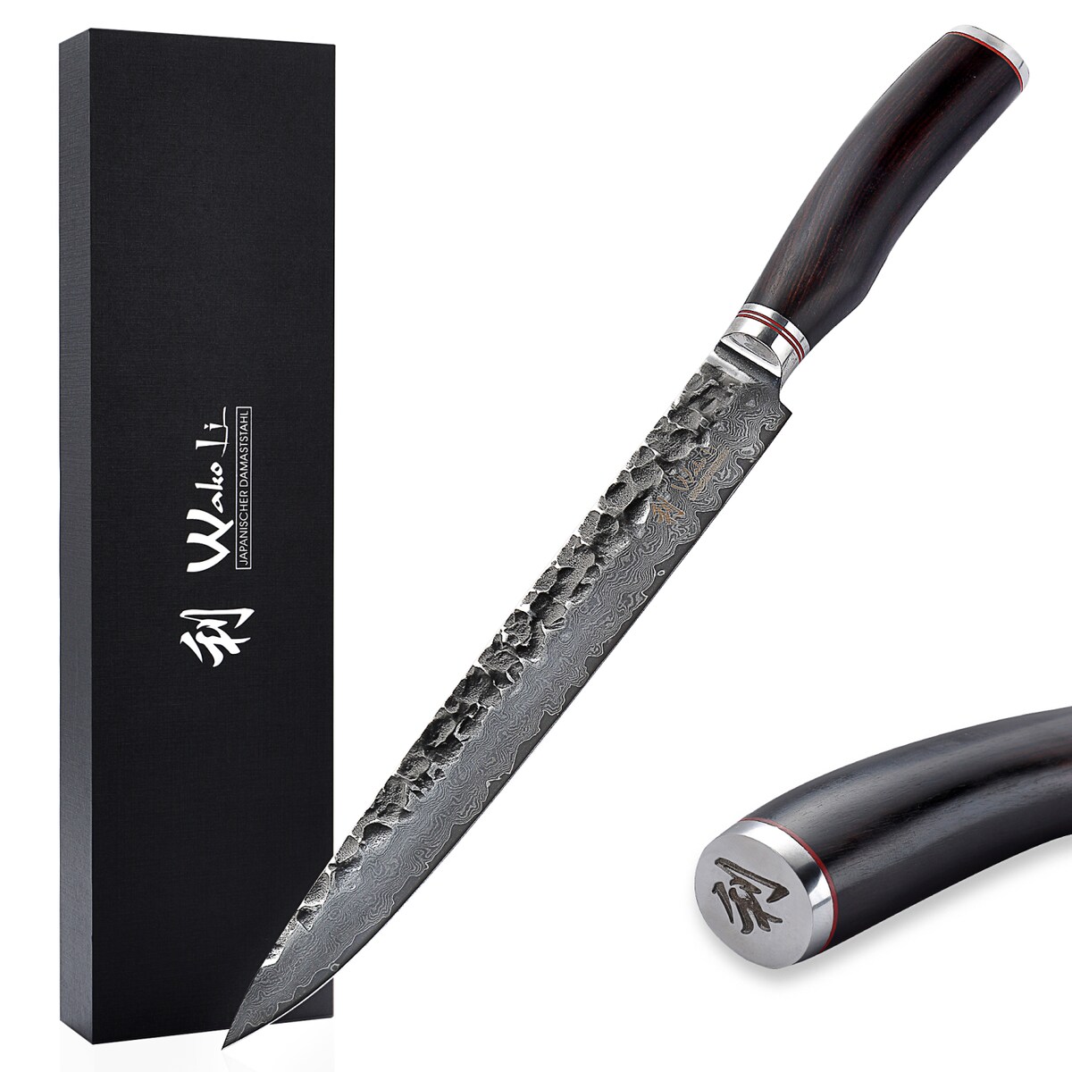 Wakoli EBO Damast Fleischmesser I 25 cm Klinge I schwarzer Eichenholzgriff