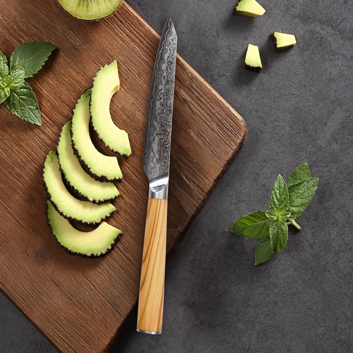 Wakoli Oribu Damastmesser Allzweckmesser I 11,50cm Klinge I Olivenholzgriff