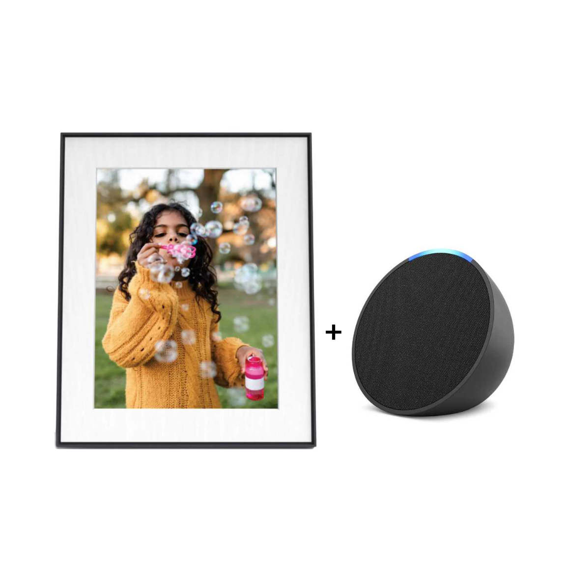 Aura Frames - Walden (15 Zoll) - Bilderrahmen + gratis Amazon Echo Pop - Neueste Generation