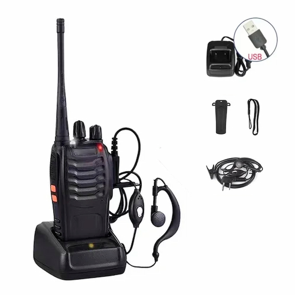 Packung mit 4 tragbaren Walkie Talkies mit USB-Ladegerät und Headset