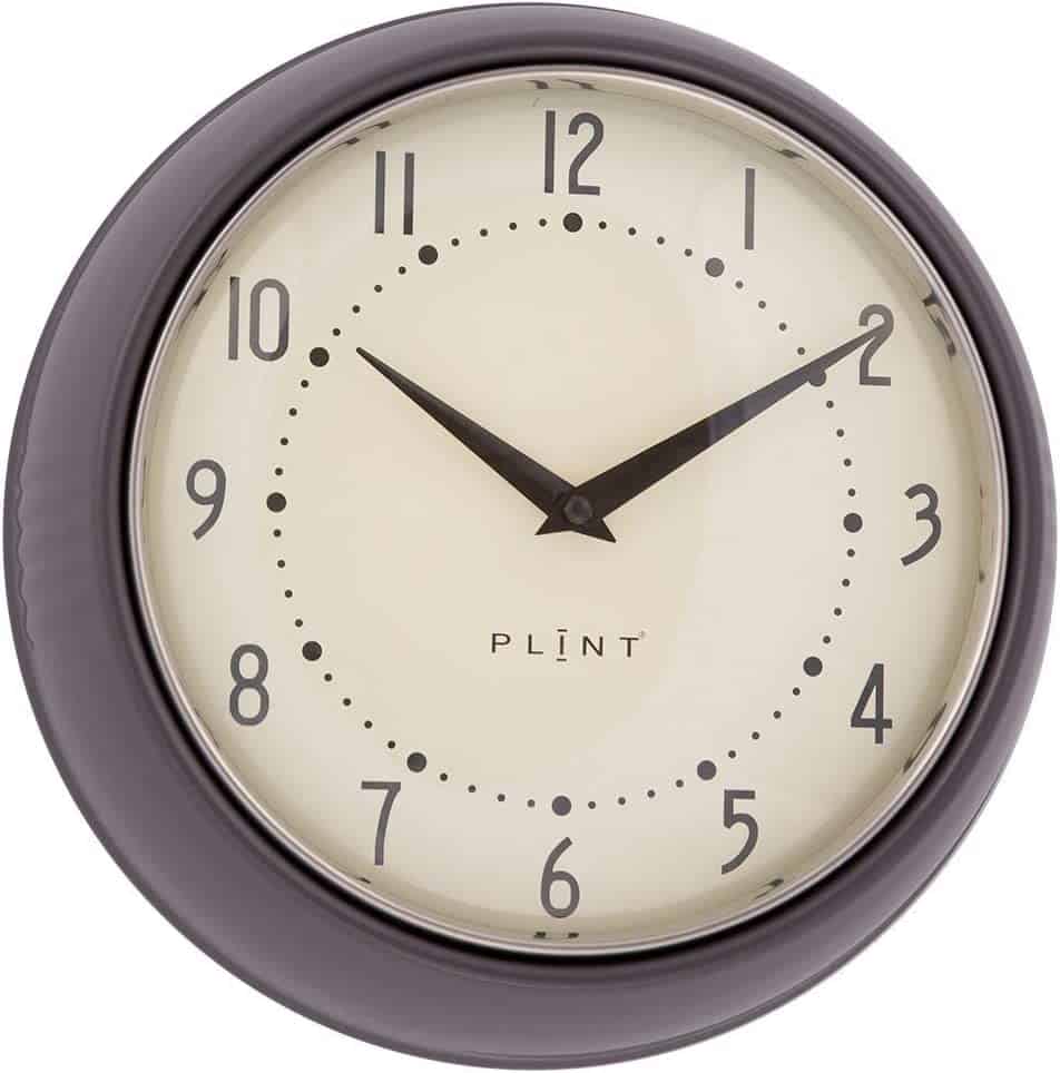 Plint Retro Wanduhr Uhr Küchenuhr Dänisches Design Wall Clock Ø 23 cm x H 7 cm Grau