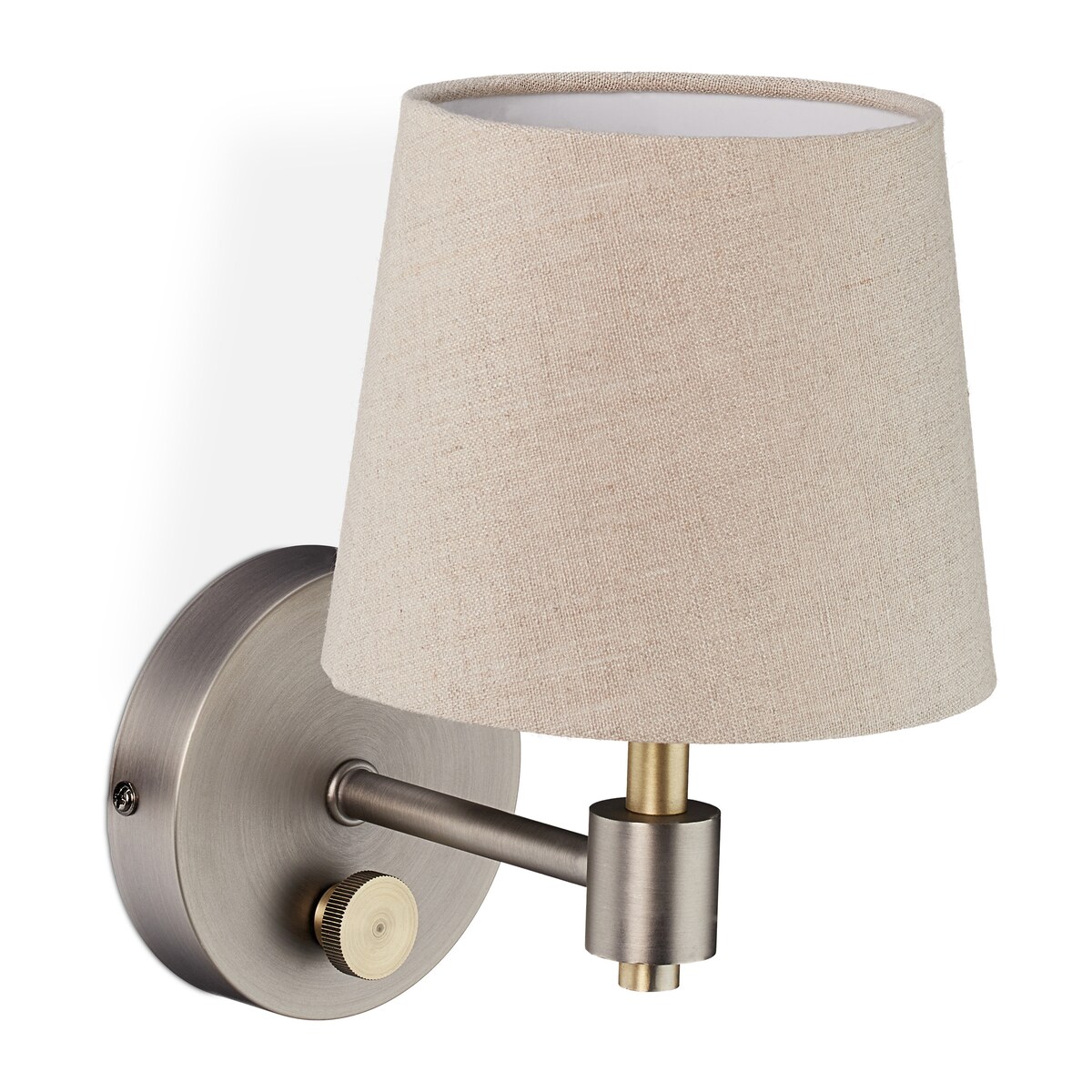 Relaxdays Wandlampe Vintage, dimmbar, Wandstrahler mit Schalter, Stoffschirm, E14, HxBxT: 23 x 15 x 21 cm, beige/silber