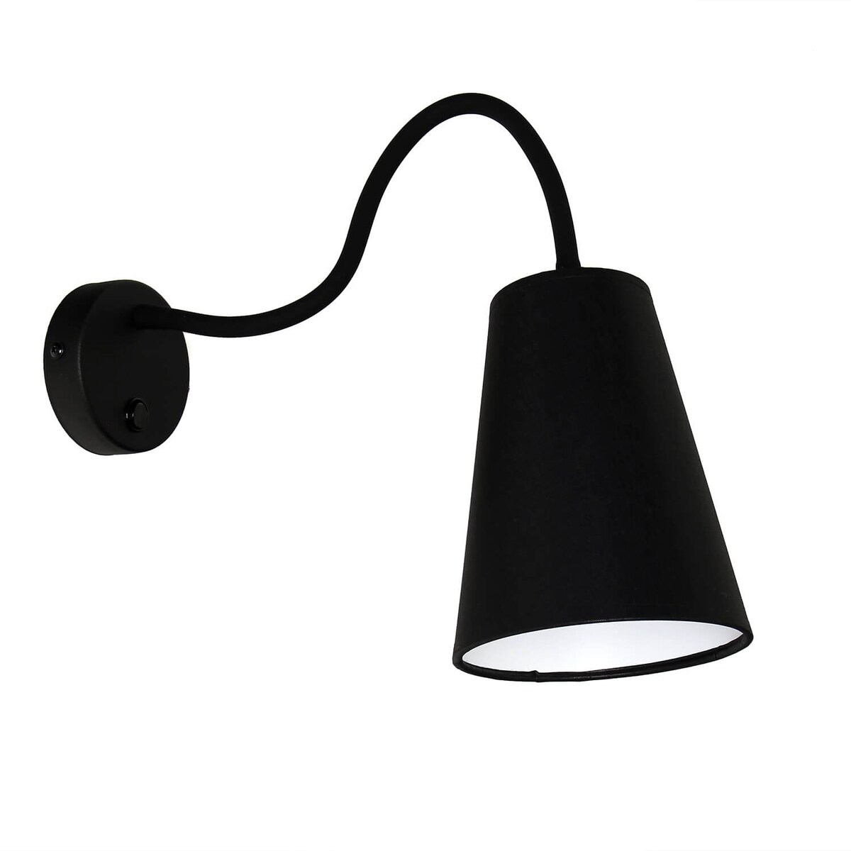 Designklassiker LED Wandleuchte Schwarz mit Schalter & Stoffschirm - Bettleuchte