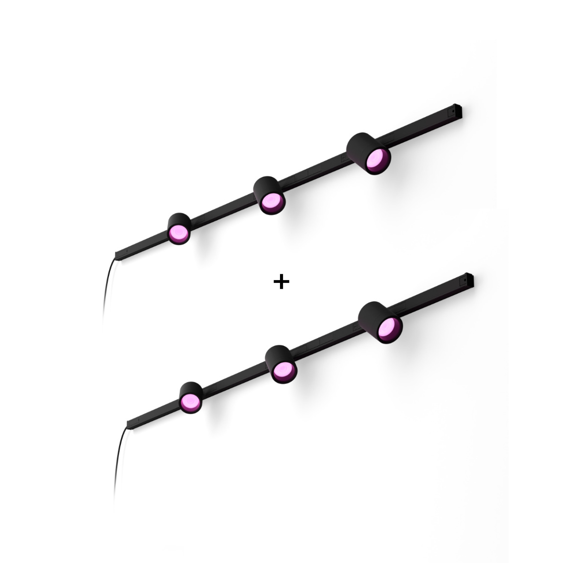 Philips Hue Perifo Basis-Set Wandleuchte schwarz gerade (2 Spots, 1 Gradient Light Tube) RGBW multicolor Licht - inkl. Steckernetzteil, Schwarz