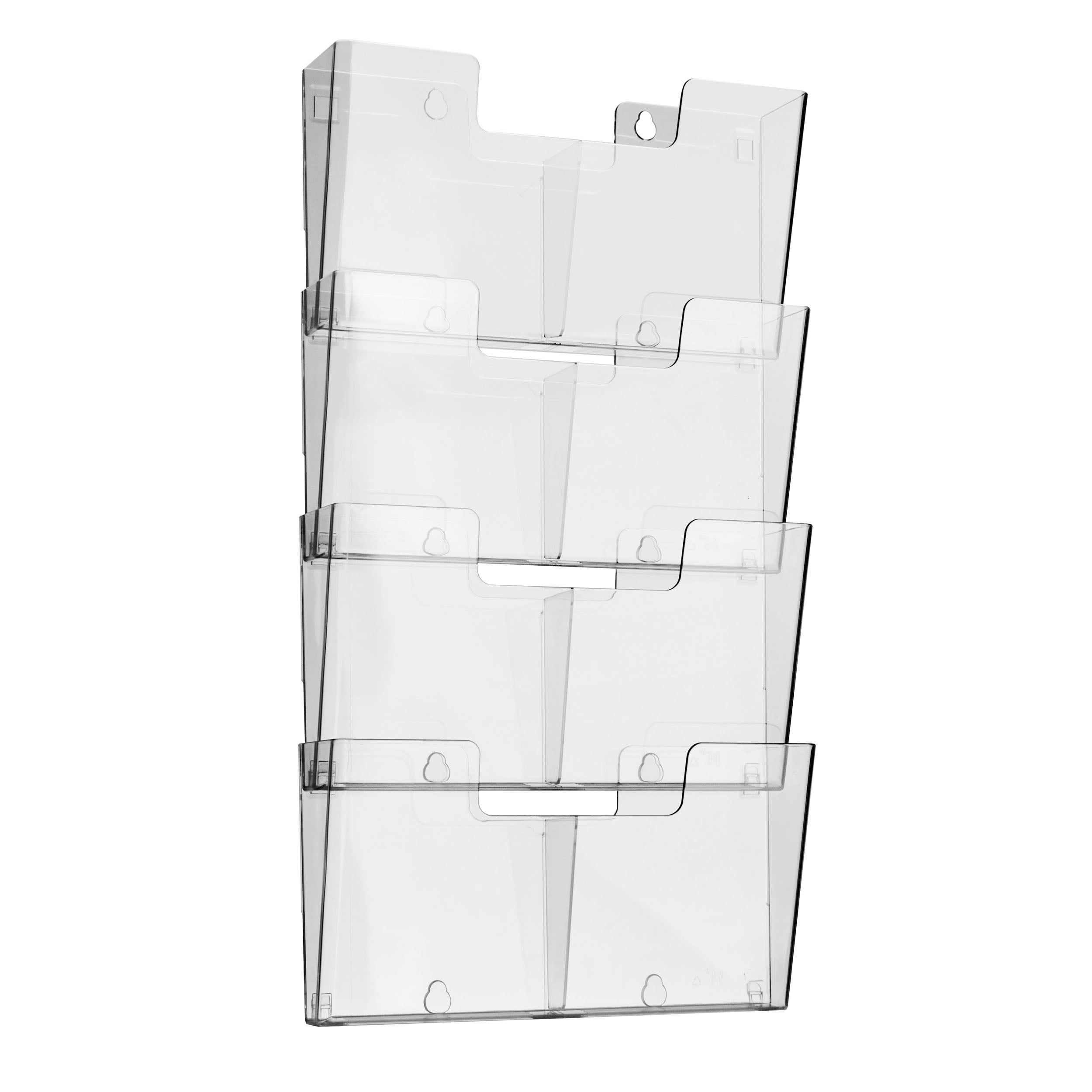 1 Set - Wandprospekthalter, Polystyrol, inkl. Trennwände, transparent PTXK A4 + 1/3 A4 | Hochformat | 4 Fächer, PS